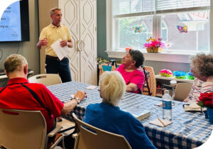 Requests for education on fraud prevention led Senior Vice President of Information Technology Jimmy Yates to create an initial presentation on phone and email scams. Miralea leadership also invited the executive director of the Office of Senior Protection at the Kentucky Office of the Attorney General to talk to residents about fraud and scams. These educational presentations are just a level of protection that living in a community afforded Buzz and her neighbors.