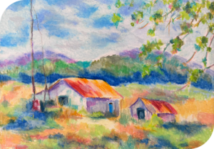 Nancy continued, “When Sabra saw what I was doing with oil pastel, she was very enthusiastic and really encouraged me, knowing I needed to do quite a few. When it came time to hang the show, I knew it would be a daunting task – fifty little paintings. But she did it and never complained.”